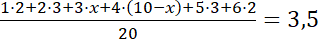W diagramie uwzględniono 10 uczniów. Zatem jako x oznaczymy uczniów, którzy otrzymali ocenę dostateczną, natomiast uczniów, którzy otrzymali ocenę dobrą jako 10 – x.