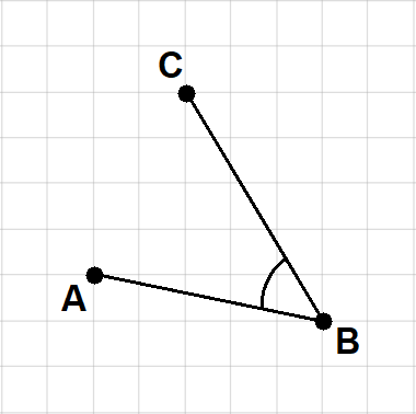 Kąt ABC to kąt ostry, którego wierzchołek znajduje się w punkcie B, a ramiona przechodzą przez punkty A i C.