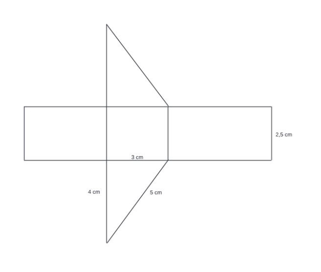 Musisz narysować siatkę graniastosłupa o krawędzi bocznej długości 2,5 cm i podstawie w kształcie trójkąta prostokątnego o bokach długości 3 cm, 4 cm, 5 cm.