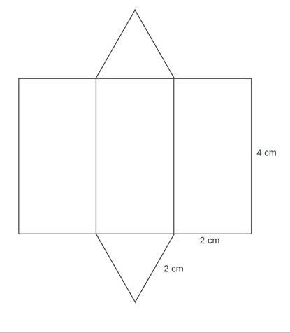 Dany jest graniastosłup o wysokości długości 4 cm oraz mający podstawę w kształcie trójkąta równobocznego o boku 2 cm. Narysuj jego siatkę.