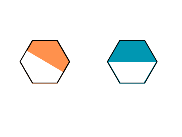 Dla ułatwienia możesz sobie wyobrazić, że przez figurę przechodzą linie, dzielące przedstawione figury kolejno na sześć oraz dwanaście części. Następnie zamaluj trzy oraz sześć z tych części.