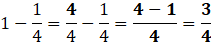 Zapisz liczbę całkowitą (1) w postaci ułamka, o takim samym mianowniku jak ułamek, a następnie odejmij od siebie te liczby.
