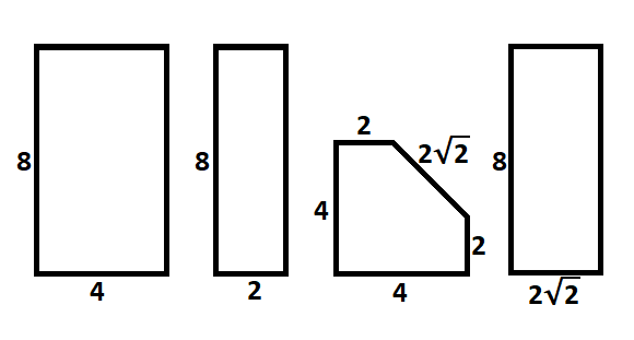 Z treści zadania wynika, że w graniastosłupie występują 4 rodzaje różnych ścian. Wystarczy narysować je i podpisać ich wymiary zgodnie z opisem.