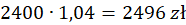 W zadaniu musisz obliczyć ile to 4% z 2400 zł oraz dodać do wyniku 100% liczby. 4% to 0,04, a 100% to 1, zatem 0,04 + 1 = 1,04.
