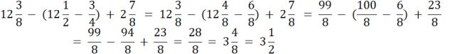 Sprowadzamy do wspólnego mianownika, zamieniamy liczby mieszane na ułamki niewłaściwe i wykonujemy działania, na koniec zamieniamy ułamek niewłaściwy na liczbę mieszaną i skracamy do najprostszej postaci.