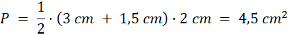 Dwie kratki to 1 cm. Pole trapezu to suma długości podstaw pomnożona przez wysokość i podzielona na 2.