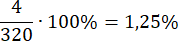 Podziel 4 przez 320, a otrzymany ułamek zamień na procenty: