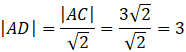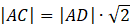 Aby obliczyć długość odcinka AD zauważ, że trójkąt ADC jest trójkątem prostokątnym równoramiennym, więc długości jego boków są postaci