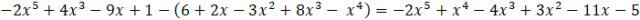 Aby rozwiązać zadanie zapisz różnicę wielomianów W(x) i P(x). Następnie zredukuj jednomiany podobne i uszereguj wielomian malejąco.