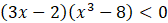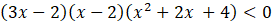 Aby rozwiązać nierówność, stosujemy metodę grupowania wyrazów. Następnie wyłącz czynnik 3x – 2 przed nawias. Dla wyrażenia w nawiasie stosujemy wzór skróconego mnożenia na różnicę sześcianów. Na podstawie otrzymanej postaci iloczynowej wielomianu naszkicuj jego wykres, a następnie odczytaj z niego rozwiązania.