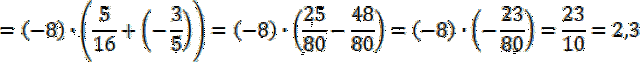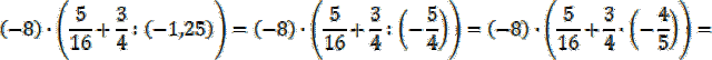 Na początek musisz wykonać dzielenie w nawiasie: zapisz ułamek dziesiętny jako ułamek zwykły niewłaściwy i wykonaj mnożenie przez jego odwrotność. Następnie sprowadź ułamki do wspólnego mianownika i dodaj je do siebie (dodawanie liczby ujemnej orzesz zapisać jako odejmowanie liczby do niej przeciwnej). Na koniec wykonaj mnożenie, pamiętaj, iloczyn dwóch liczb ujemnych jest dodatni, a liczby ujemnej i dodatniej – ujemny,