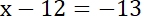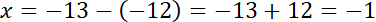 Skorzystaj ze wskazówki. Liczba x pomniejszona o 12 daje (–13), więc liczba –13 powiększona o 12 da z powrotem wartość szukanej liczby. Pamiętaj, odejmowanie liczby ujemnej możesz zastąpić dodawaniem liczby do niej przeciwnej.