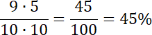 Zapisz w liczniku ułamka liczbę zamalowanych kwadratów, a w mianowniku – liczbę wszystkich kwadratów, budujących prostokąt. Ułamek ma w mianowniku liczbę 100, więc ułamek jest równy liczbie w liczniku.