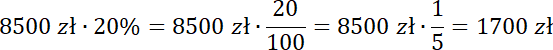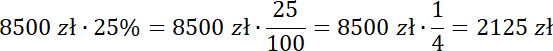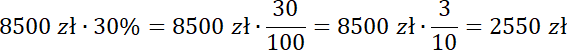 Aby obliczyć kwoty przeznaczone na poszczególne zakupy, musisz zapisać podane procenty jako ułamki i skrócić je, a następnie pomnożyć całkowitą kwotę przeznaczoną przez dyrektora przez otrzymane ułamki.