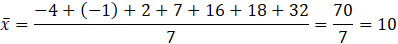 Zacznij zatem od obliczenia średniej arytmetycznej liczb -4, -1, 2, 7, 16, 18, 32: