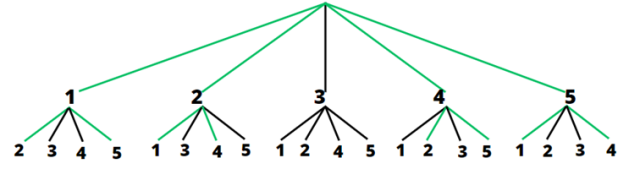 Ω = {12, 13, 14, 15, 21, 23, 24, 25, 31, 32, 34, 35, 41, 42, 43, 45, 51, 52, 53, 54}