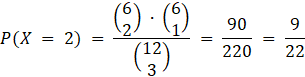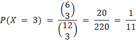Oblicz prawdopodobieństwo wylosowania odpowiednio 0, 1, 2 i 3 czarnych skarpet spośród 6 czarnych skarpet i 6 w innych kolorach. Zapisz wynik jako rozkład zmiennej losowej X, czyli