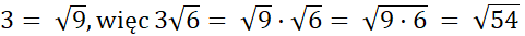 Zapisz liczbę całkowitą jako pierwiastek i zastosuj zasadę mnożenia pierwiastków. Jeśli mnożymy lub dzielimy dwa pierwiastki jednakowych stopni, to możemy zapisać je pod jednym pierwiastkiem.