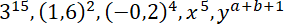 , suma wykładników musi wynosić 15