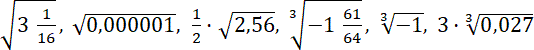 Wykonaj pierwiastkowanie jako operacje odwrotną względem potęgowania. Należy zwracać uwagę na stopień pierwiastka oraz znaki.