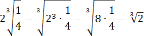 . Korzystając z tej własności włącz czynnik pod pierwiastek i zapisz wynik iloczynu.