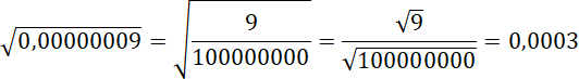 Zamień liczbę pod pierwiastkiem na ułamek dziesiętny, następnie pierwiastek ilorazu przekształć w iloraz pierwiastków.