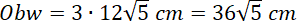 Wielokąt foremny to taki wielokąt, który ma wszystkie kąty wewnętrzne równe i wszystkie boki równej długości. W tym podpunkcie jest to trójkąt – ma 3 boki. Oblicz obwód, czyli łączną długość wszystkich boków: