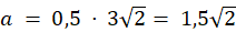 Odcinek a to połowa długości przekątnej podstawy, która jest kwadratem, zatem obliczysz ją ze wzoru