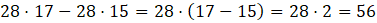 W tym zadaniu musisz wyłączyć wspólny czynnik przed nawias, którym jest 28, aby łatwiej dojść do wyniku.