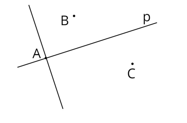 Narysuj prostą prostopadłą do prostej p i równocześnie przechodzącą przez punkt A.