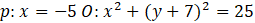 Wyznacz ilość punktów przecięcia prostej p: x = -5 z okręgiem o równaniu