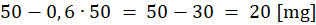 W ciągu 6 godzin z krwiobiegu jest usuwane 60% leku, zatem po 6 h ilość leku wynosi: