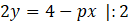 Podany układ równań nie będzie miał rozwiązań, gdy wykresy obu równań będą prostymi równoległymi do siebie. Aby określić dla jakiej wartości parametru p nastąpi taka sytuacja zamień najpierw oba równania na postacie kierunkowe.