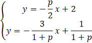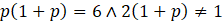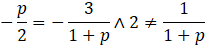 W pierwszym warunku możesz przemnożyć równania „na krzyż”, zaś w drugim wystarczy, że obie strony pomnożysz przez (1 + p) (tak naprawdę to też jest mnożenie „na krzyż”, z tym, że mianownik liczby 2 to 1)