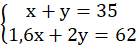 Oznacz liczbę truskawek jako x oraz liczbę poziomek jako y. Następnie utwórz układ równań. W pierwszym równaniu zapisz sumę liczby truskawek oraz poziomek dającą wynik 35. W drugim równaniu zapisz sumę ilości truskawek i poziomek pomnożonych przez ich cenę, dającą wynik 62.