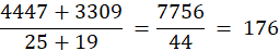 170 + 172 + 4 ∙ 173 + 2 ∙ 175 + 5 ∙ 178 + 5 ∙ 180 + 2 ∙ 181 + 4 ∙ 182 + 183 = 170 + 172 + 692 + 350 + 890 + 900 + 362 + 728 + 183 = 4447