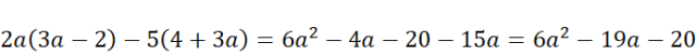 Wymnóż sumy algebraiczne w nawiasach przez jednomiany, a następnie zredukuj wyrazy podobne.