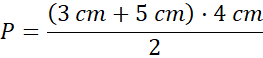 Pole trapezu obliczamy dodając do siebie długości podstaw, mnożąc to przez wysokość, a cały wynik dzieląc przez 2.