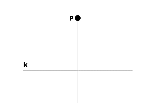 Jeśli poprowadzisz z punktu P linię, która przetnie prostą k pod kątem prostym, otrzymasz prostą prostopadłą do prostej k.