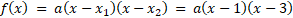 Wiedząc, że liczby x1 = 1 i x2 = 3 są miejscami zerowymi funkcji f oraz do jej wykresu należy punkt P(4, 6), wyznacz jej postaci iloczynową i ogólną.