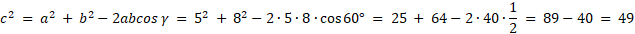 Oblicz długość c boku trójkąta, jeżeli wiadomo, że