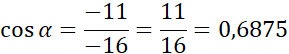 -11 = -16 ∙ cos α / : (-16)