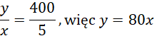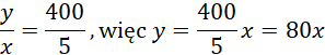 Wiadomo, że x i y są wprost proporcjonalne – to znaczy, że ich iloraz jest stały. Zapisz proporcję, a następnie wyznacz wzór na y.