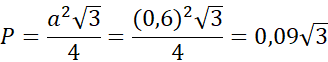 Mając podaną długość boku: 0,6 oblicz pole trójkąta równobocznego.
