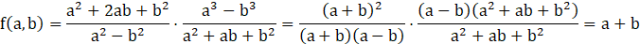 Doprowadzamy do postaci iloczynowej licznik i mianownik, a potem, jeśli to możliwe – skracamy. Wstawiamy w miejsce a liczbę -1, a w miejsce b liczbę 2 i obliczamy.