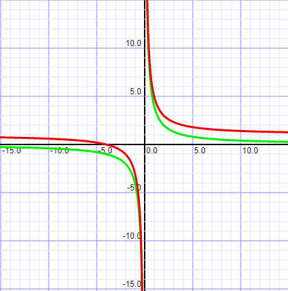Mianownik funkcji homograficznej musi być niezerowy. W ten sposób poznajemy równanie asymptoty x. Można je również odczytać z postaci kanonicznej funkcji