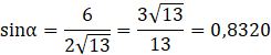 Wyliczamy długość brakującego boku. Z tablic matematycznych odczytujemy wartość kąta, którego sinus jest najbliższej wartości 0,832.
