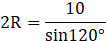 Wyznacz promień okręgu opisanego na trójkącie o kącie rozwartym równym