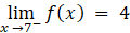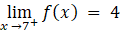Dla argumentu x = 7 wartości funkcji f dążą od lewej i prawej strony do wartości 4.