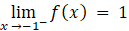 Dla argumentu x = -1 wartości funkcji f dążą od lewej i prawej strony do wartości 1.